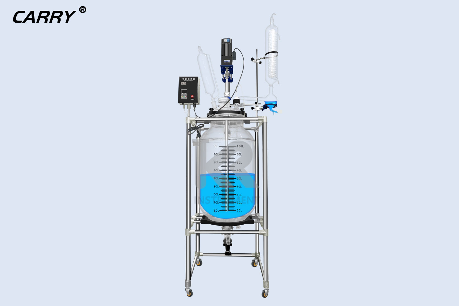 100L單層玻璃反應(yīng)釜具有電動恒速攪拌系統(tǒng)、冷凝、滴加系統(tǒng)、加熱浴鍋。在...