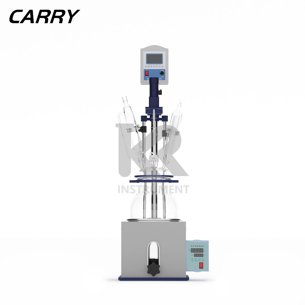 1L單層玻璃反應(yīng)釜具有電動恒速攪拌系統(tǒng)、冷凝、滴加系統(tǒng)、加熱浴鍋。在攪拌...